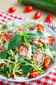 - To prepare the noodles: Use a kitchen slicer by World Cuisine to slice the zucchini into linguini size noodles. Toss the zucchini with pest until well coated.